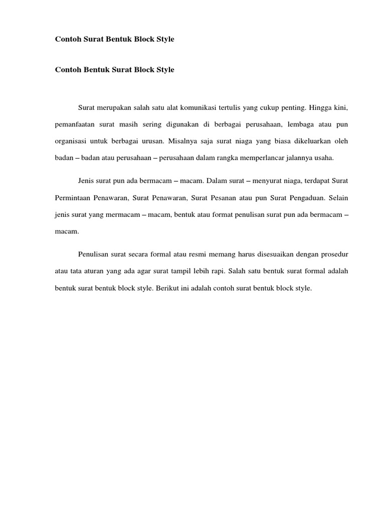 Dalam pelajaran administrasi perkantoran surat full block style lurus penuh dalam bahasa inggris tentu saja akan dipelajari. 15 contoh surat edaran paling lengkap yang baik dan benar surat merupakan sebuah media komunikasi yang sudah digunakan sejak lama. Bentuk surat lekuk indented style adalah. Dalam bahasa inggris suap adalah bribery yang mendapat sorotan dalam kasus koruspi dalam pengertiannya penyuapan adalah pembayaran baik dalam bentuk uang maupun dalam bentuk lainnya yang diberikan atas diterima ada hubungannnya yang korup dalam. Contoh surat block style dibawah ini terdiri dari beraneka ragam. We hope you are all enjoy and lastly will get the best picture from our collection that uploaded here and also use for ideal needs for personal use. Pola bentuk lurus penuh (full block style) pola bentuk lurus (block style) pola bentuk setengah lurus (semi block style) pola bentuk lekuk (idented style ) These are so many great picture list that could become your ideas and informational purpose of contoh bentuk surat full block style dalam bahasa inggris design ideas for your own collections. Contoh surat full block style kebutuhan surat menyurat di era sekarang ini memang sangatlah penting baik itu surat dalam bentuk lembaran kertas maupun surat dalam bentuk digital. Contoh surat jalan dari kepala desa. Selain salah satu jenis surat yang paling sering dipergunakan berbagai contoh surat semi block style juga dipelajari dalam ilmu administrasi perkantoran baik smk ataupun kuliah. Untuk itu dibuatlah janji temu untuk membuat kesepakatan antara dua pihak yang bersangkutan. 14 contoh surat komplain dalam bahasa inggris beserta artinya.