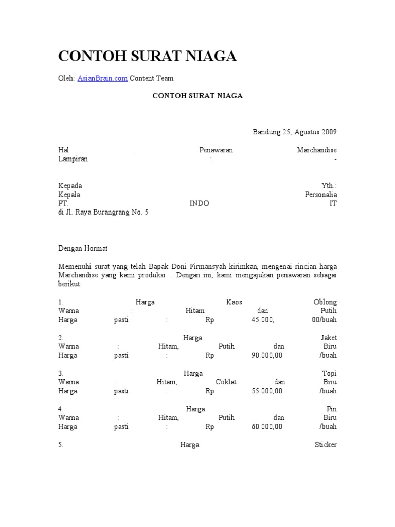 5+ contoh surat niaga bentuk full block style terlengkap.