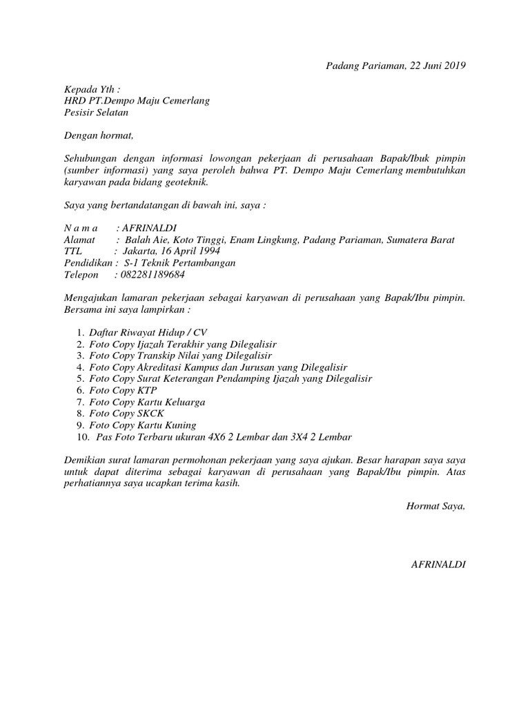 Contoh Surat Lamaran Kerja Di Perusahaan Minyak Contoh Surat from 1.bp.blogspot.com 23rd april 2021 4 min read. Gambar diatas merupakan salah satu contoh surat lamaran kerja untuk melamar di perusahaan tambang. Surat pengalaman kerja adalah sebuah teks surat yang diberikan pada karyawan setelah ia resmi berhenti dari suatu pekerjaan. Sebagian orang memilih untuk membuka usaha sendiri dan mendapatkan penghasilan dari sana. Surat pengalaman kerja biasanya akan dibuat perusahaan untuk karyawan yang telah mengundurkan diri dari perusahaan tempatnya bekerja. Mulai dari pendidikan yang ditempuh, pengalaman kerja dan organisasi, kemampuan, prestasi dan lainnya. Berikut contoh surat pengalaman kerja dari perusahaan administrasi bidan guru karyawan yang baik dan benar. Contoh surat pengalaman kerja biasanya banyak dicari bagi mereka yang ingin mencari pekerjaan baru sobat.